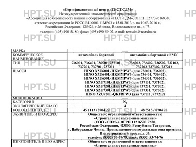 | Базовое ТС / Шасси | HINO XZU600L-HKMMPW3 (для 736001, 736002), HINO XZU640L-HKMMPW3 (для 736401, 73… |
