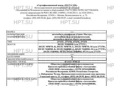 Базовое ТС / Шасси ISUZU NMR85H (для 27727C), ISUZU NPR75L-K, ISUZU NPR75L-L, ISUZU NPR75L-M (для …