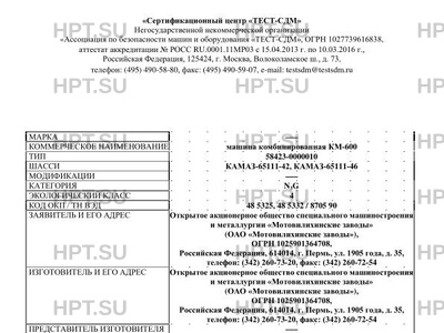 | Коммерческое наименование | машина комбинированная КМ-600 |