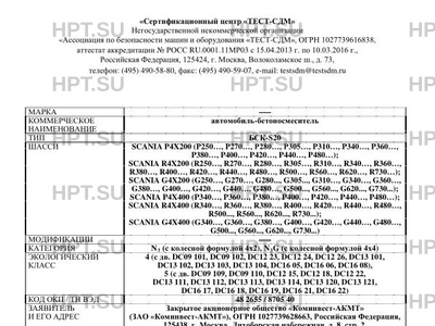 | Базовое ТС / Шасси | SCANIA P4X200 (P250…, P270…, Р280…, Р305…, P310…, P340…, P360…, P380…, P400…, P… |