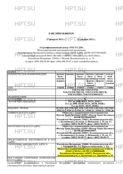 | Топливо | дизельное 1 4 E-RU.MP03.В.00029.Р1 для ТС с дв. D9B D13A D16C D13B D11A дизельное 1 5 E-RU.MP03.В.00029.Р1 для ТС с дв. D16E D11B D11C D13C D16G |