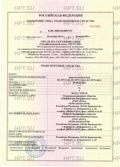 | Предприятие-изготовитель | Открытое акционерное общество «Клинцовский автокрановый завод» (ОАО «КАЗ»), ОГРН 1023201339700; Российская Федерация, 243140, Брянская обл., г. Клинцы, ул. Дзержинского, д. 10 |