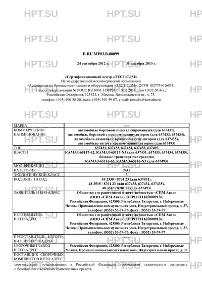 | Тип ТС | 637431, 637433, 637434, 637435, 637493 |