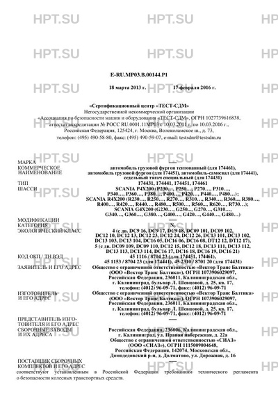 | Базовое ТС / Шасси | SCANIA P4X200 (P230…, P250…, P270…, P310…, P340…, P360…, P380…, P400…, P420…, P… |