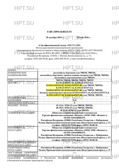 | Базовое ТС / Шасси | КАМАЗ-65115-А4, КАМАЗ-65115-L4, КАМАЗ-65115-42, КАМАЗ-65115-46 (для 780530, 780… |