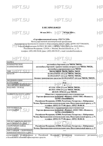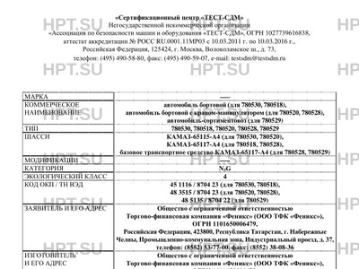 | Базовое ТС / Шасси | КАМАЗ-65115- 780530, 780520 А4 (для), КАМАЗ-65117- 780518, 780528), А4 (для баз… |