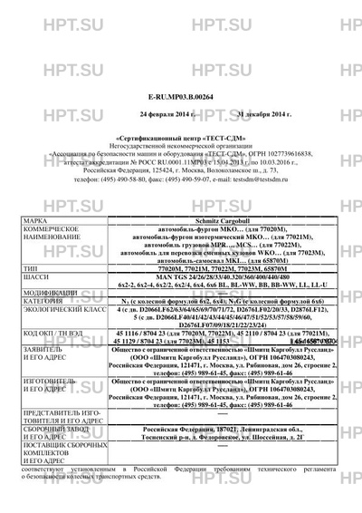 | Категория ТС | N3 (с колесной формулой 6х2, 6х4), N3G (с колесной формулой 6х6) |