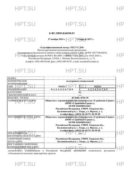 | Количество осей/колес | 3 / 6 (для 932313), 3 / 12 (для 932311, 932313) |