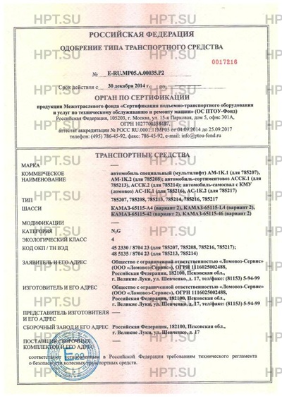 | Тип ТС | автомобиль специальный (мультилифт) AM-1K.1 (для 785207), AM-1K.2 (для 785208);… |