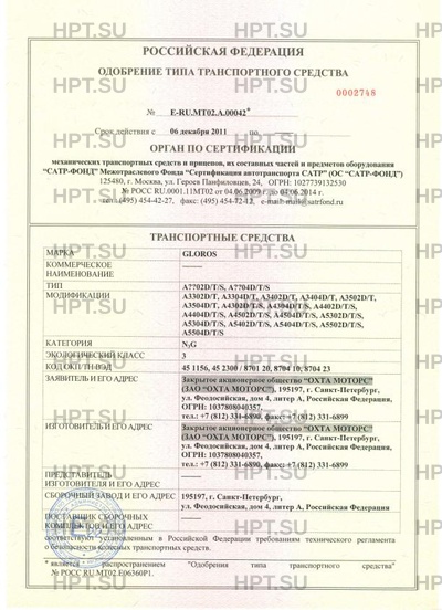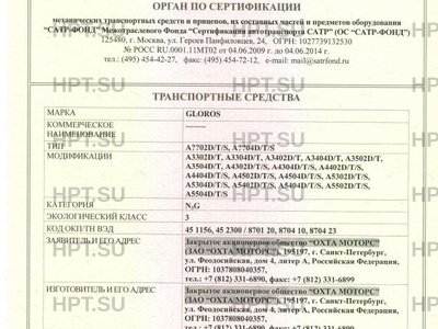 | Марка ТС | GLOROS |