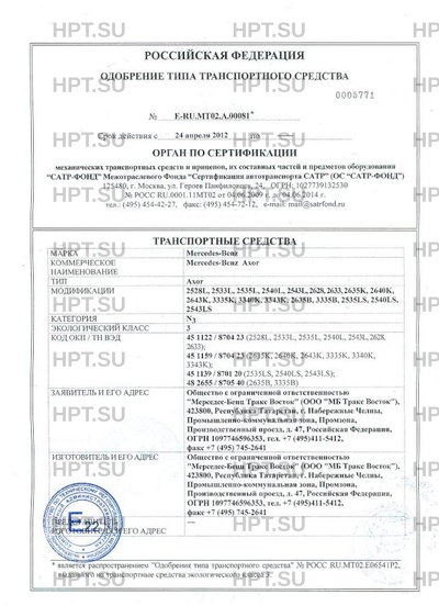 | Коммерческое наименование | Мercedes-Benz Аxог. Тип ТС: Аxor |