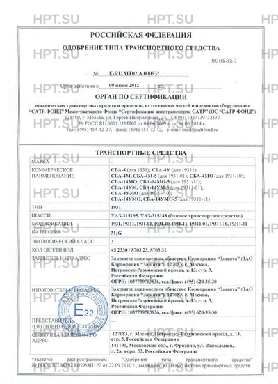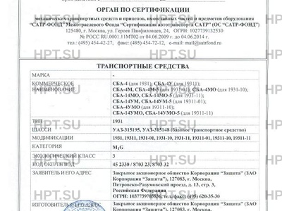 | Базовое ТС / Шасси | УАЗ~315195, УАЗ-31'5148 (базовое транспортное средство) 1031,19311, 1931-01. 1931-10. 1931-11.19311-01,19311-10,19311-1] |