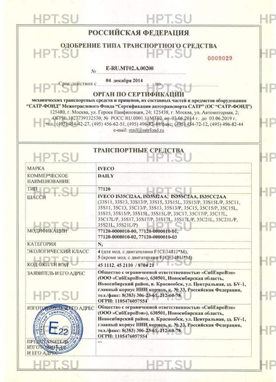 | Сборочный завод | ООО "СибЕвроВэн", 630056, г. Новосибирск, ул. Софийская, д 12, Российская Федерация |