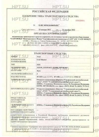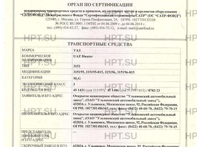 | Коммерческое наименование | UAZ Hunter. Тип ТС: 3151 |