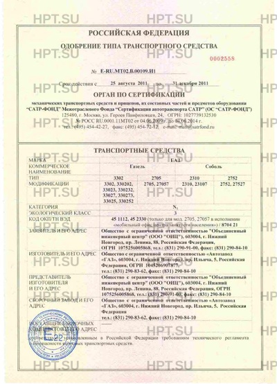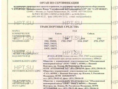 | Коммерческое наименование | Газель ; Соболь. Тип ТС: 3302,2705; 2310, 2752 |