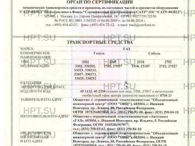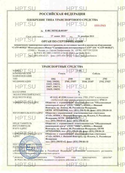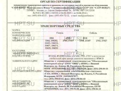 | Коммерческое наименование | Газель ; Соболь 3302, 2705 ; 2310, 2752 |