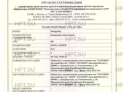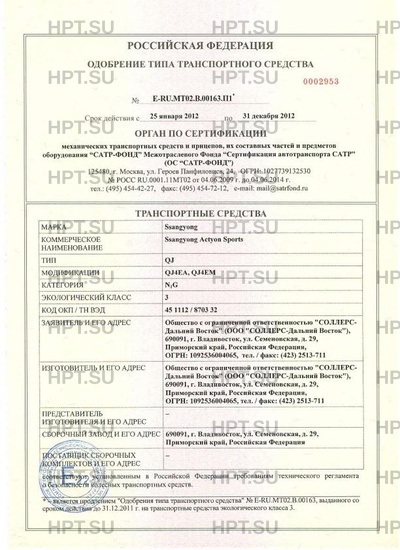 | Коммерческое наименование | Ssangyong Actyon Sports. Тип ТС: QJ |
