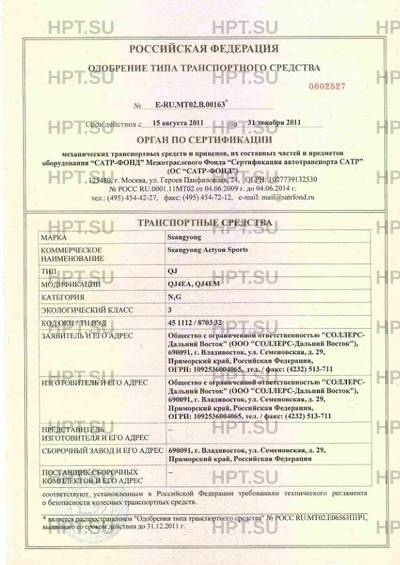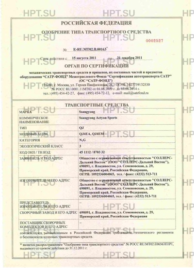 | Коммерческое наименование | Ssangyong Actyon Sports |