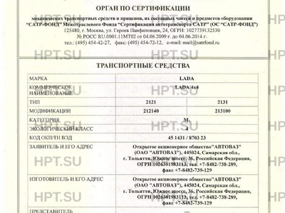 Предприятие-изготовитель Открытое акционерное общество"АВТОВАЗ" (ОАО "АВТОВАЗ"), 445024, Самарская обл., г. Тольятти, Южное шоссе, 36, Российская Федерация, ОГРН 1026301983113, тел. +7-8482-738-289, факс +7-8482-739-129
