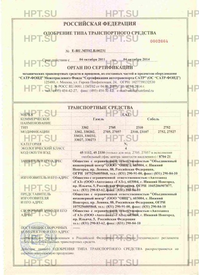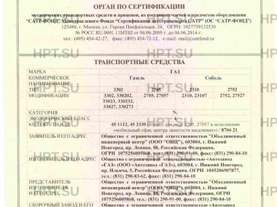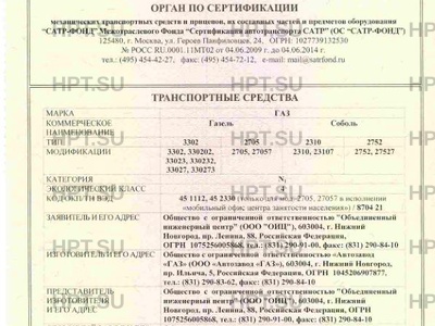 | Коммерческое наименование | Газель; Соболь. Тип ТС: 3302,2705; 2310, 2752 |