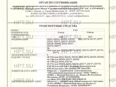 | Коммерческое наименование | Газель Соболь; 3221 2217 |
