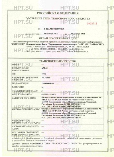 | Коммерческое наименование | АМ-01. Тип ТС: 1990 |