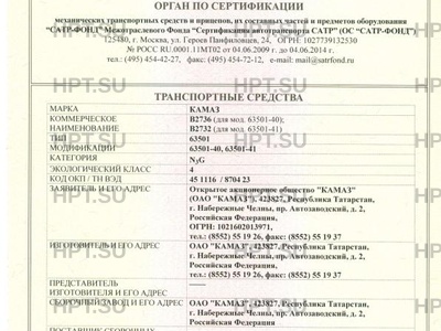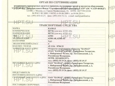 | Заявитель | Открытое акционерное общество "КАМАЗ" (ОАО "КАМАЗ"), 423827, Республика Татарстан, г. Набережные Челны, пр. Автозаводский, д. 2, Российская Федерация, ОГРН: 1021602013971, тел.: (8552) 55 19 26, факс: (8552) 55 19 37 |