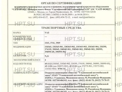 | Дополнительная информация | Транспортные средства не предназначены для перевозки опасных грузов.; Назначение специализированных и специальных транспортных средств:; 330365-901-выездная торговля;; 330365-903-перевозка продуктов;; 330365-904-перевозка хлеба;; 390945-901-перевозка оборудования и грузов;; 390945-902,390995-902-автомобиль для аварийно-спасательных служб;; 390945-903-малый лесопатрульный комплекс. |