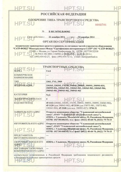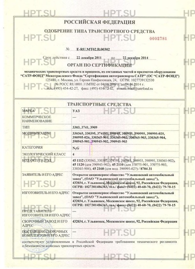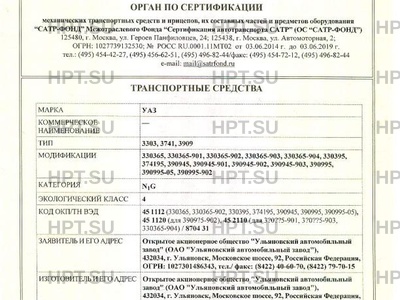 | Коммерческое наименование | —. Тип ТС: 3303, 3741, 3909 |