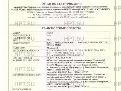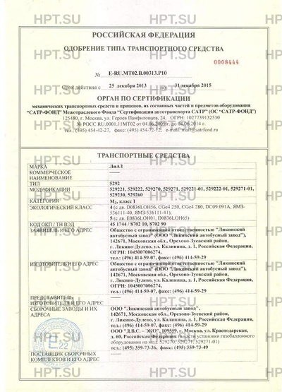 | Сборочный завод | ООО "Ликинский автобусный завод", 142671, Московская обл., Орехово-Зуевский район, г. Ликино-Дулево, ул. Калинина, д. 1, Российская Федерация, тел.: (496) 414-59-07, факс: (496) 414-59-29 ООО "Д.В.С. - ЭКО", 109559, г. Москва, ул. Краснодарская, д. 60, Российская Федерация (в части установки газобаллонного оборудования на мод. 529270, 529271, 529271-01) тел.: (495) 359-73-36, факс: (495) 359-73-49 |