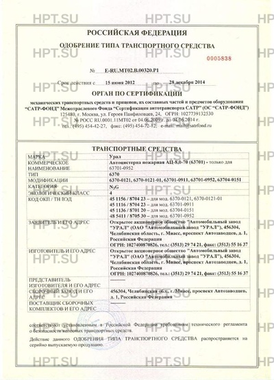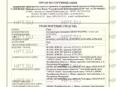 Коммерческое наименование Автоцистерна пожарная АЦ-8,0-70 {63701) - только для 63701-0952; 6370