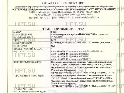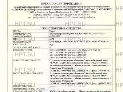 Коммерческое наименование Автоцистерна пожарная АЦ-8,0-70 {63701) - только для 63701-0952; 6370