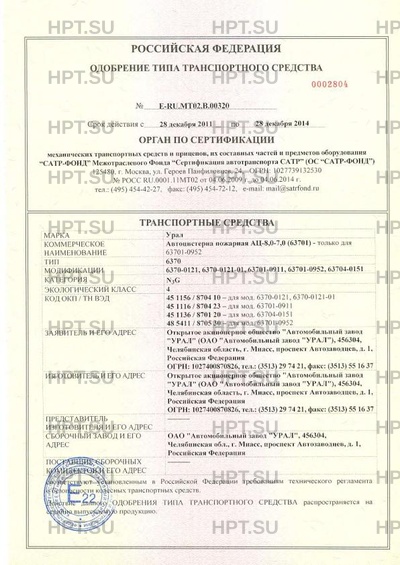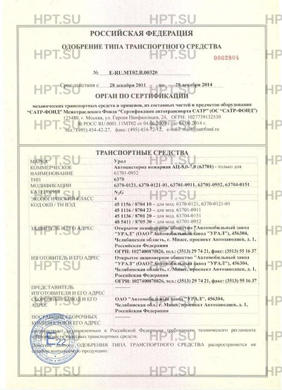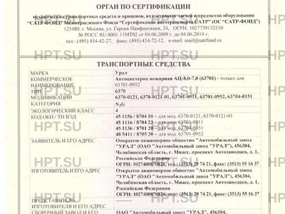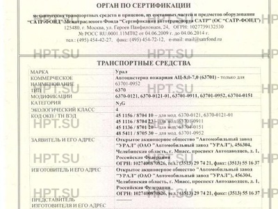 | Коммерческое наименование | Автоцистерна пожарная АЦ-8,0-7,0 (63701) - только для 63701-0952. Тип ТС: 6370 |