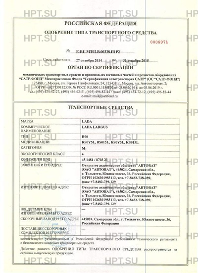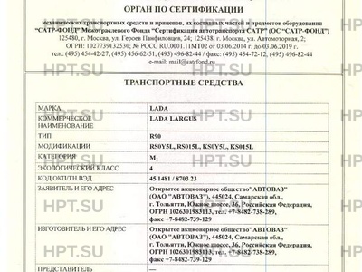 | Коммерческое наименование | LADA LARGUS; R90 |