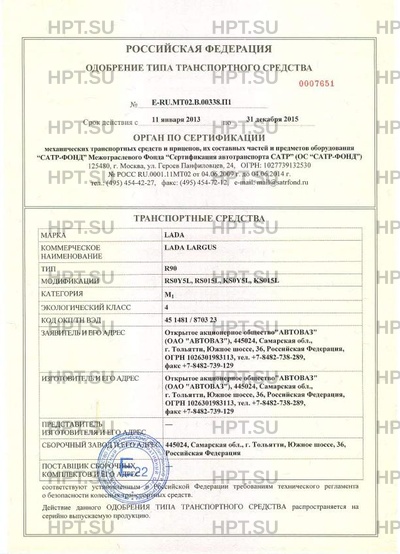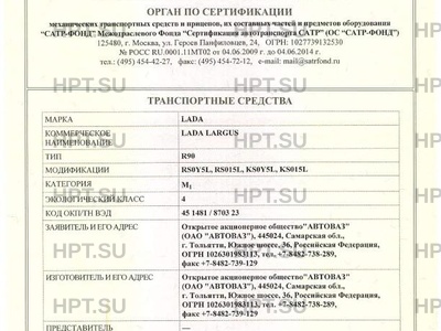 | Коммерческое наименование | LADA LARGUS. Тип ТС: R90 |