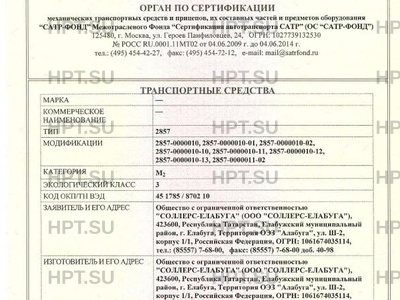 | Коммерческое наименование | —. Тип ТС: 2857 |