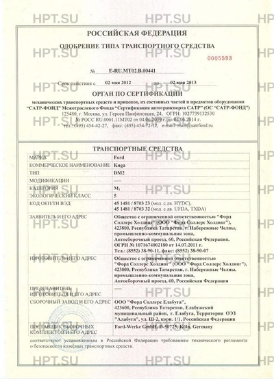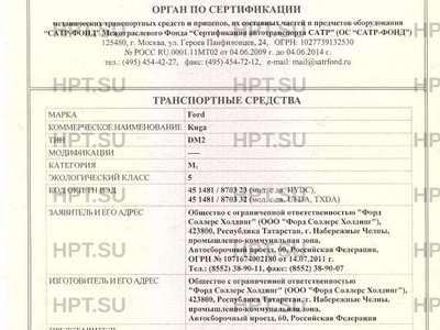 | Коммерческое наименование | Kuga. Тип ТС: DM2 |