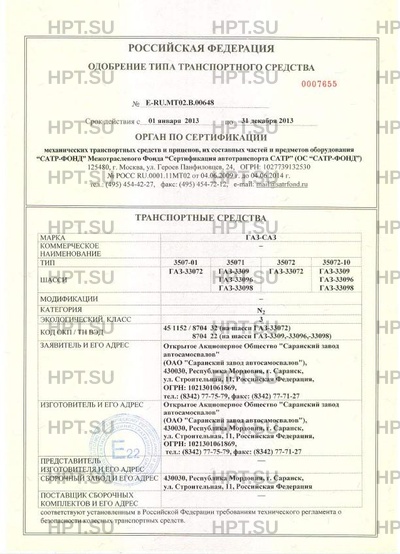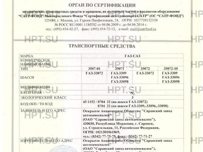 | Коммерческое наименование | Тип ТС: 3507-01; 35071; 35072; 35072-10 |