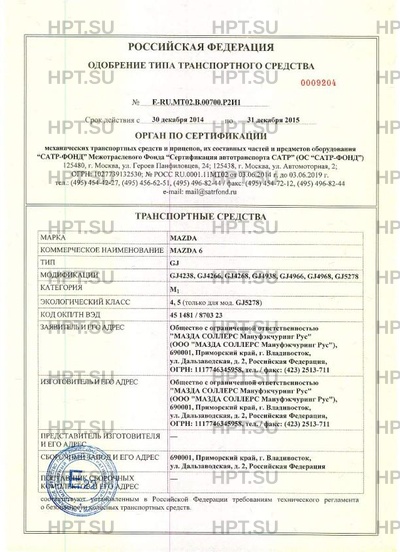 | Заявитель | Общество с ограниченной ответственностью "МАЗДА СОЛЛЕРС Мануфэкчуринг Рус" (ООО "МАЗДА СОЛЛЕРС Мануфэкчуринг Рус"), 690001, Приморский край, г. Владивосток, ул. Дальзаводская, д. 2, Российская Федерация, ОГРН: 1117746345958, тел. / факс: (423) 2513-711 |