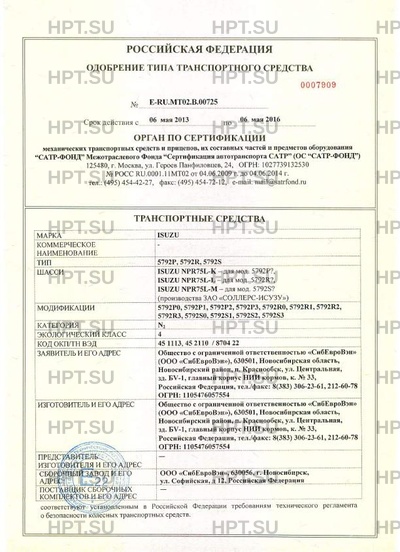 | Сборочный завод | ООО "СибЕвроВэн", 630056, г. Новосибирск, ул. Софийская, д 12, Российская Федерация |