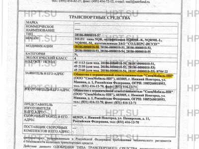 | Базовое ТС / Шасси | ISUZU типа NQR, модификаций NQR90L-K, NQR90L-L, NQR90L-M, изготовленные ЗАО "СО… |