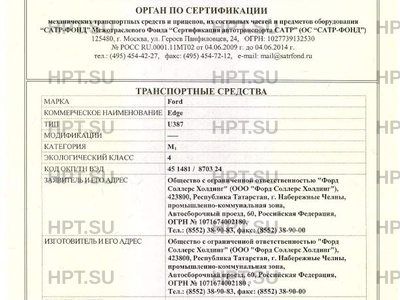 | Предприятие-изготовитель | Общество с ограниченной ответственностью "Форд Соллерс Холдинг" (ООО "Форд Соллерс Холдинг"), 423800, Республика Татарстан, г. Набережные Челны, промышленно-коммунальная зона, Автосборочный проезд, 60, Российская Федерация, ОГРН № 1071674002180, Тел.: (8552) 38-90-83, факс: (8552) 38-90-00 |