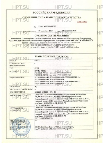 | Базовое ТС / Шасси | ISUZU RFSR FSR90SL-NCUS - для мод. 57928-0000010-1?, FSR90SL-PCUS - для мод. … |