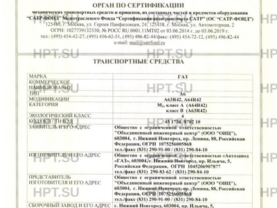 | Предприятие-изготовитель | Общество с ограниченной ответственностью «Автозавод «ГАЗ», 603004, г. Нижний Новгород, пр. Ильича, 5, Российская Федерация, ОГРН 1045206907877 тел./факс (831) 290-83-62 / (831) 290-84-10 |