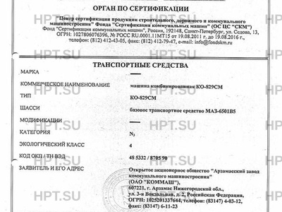 | Коммерческое наименование | машина комбинированная КО-829СМ; КО-829СМ |