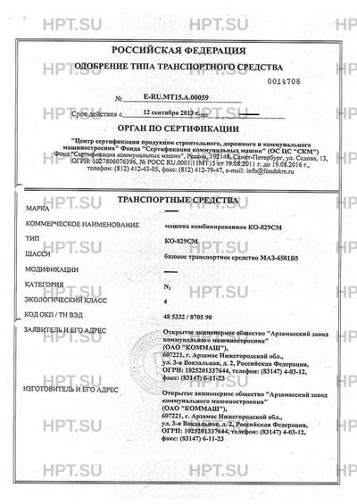 | Заявитель | Открытое акционерное общество "Арзамасский завод коммунального машиностроения" (ОАО "КОММАШ"), 607221, г. Арзамас Нижегородской обл., ул. 3-я Вокзальная, д. 2, Российская Федерация, ОГРН: 1025201337644, телефон: (83147) 4-03-12, факс: (83147) 6-11-23 |