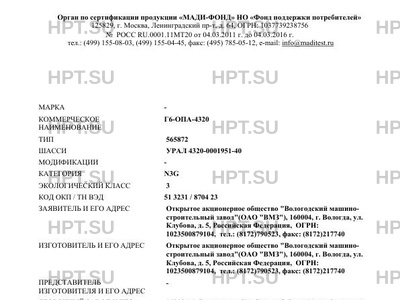 | Базовое ТС / Шасси | УРАЛ 4320-0001951-40 |