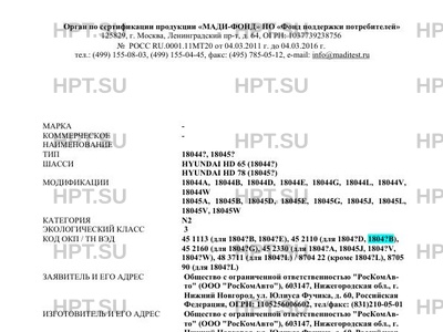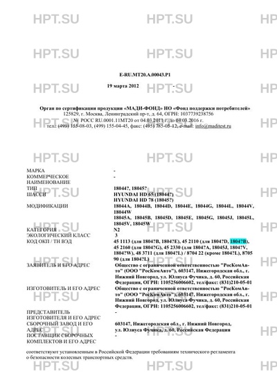 | Базовое ТС / Шасси | HYUNDAI HD 65 (18044?) HYUNDAI HD 78 (18045?) |