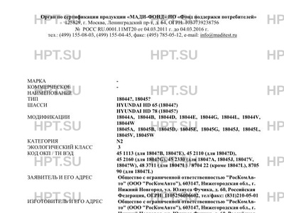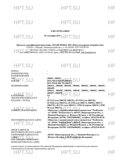 | Базовое ТС / Шасси | HYUNDAI HD 65 (18044?) HYUNDAI HD 78 (18045?) |