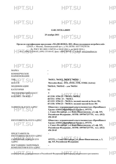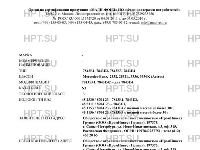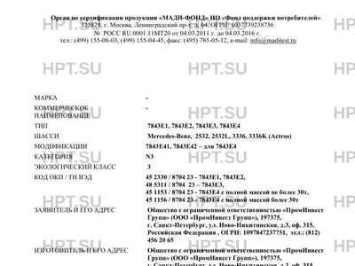Коммерческое наименование . Тип ТС: 7843Е1, 7843Е2, 7843Е3, 7843Е4